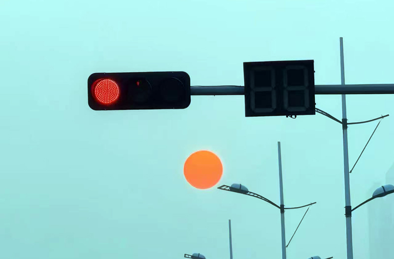2026年4月1日,在日照市海曲路和烟台路交汇拍摄了这张照片,图片中红灯与落日遥想生辉。